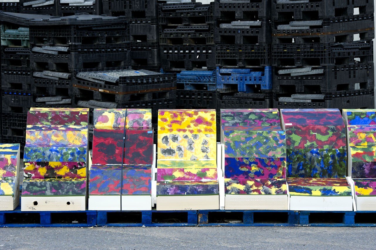“3-2=1: Bridge, Bangle & Cornice” si concentra su tre diverse collaborazioni realizzate a Londra: il progetto che Deacon e Parry sono stati invitati a presentare per il concorso del Millennium Bridge (1996) — ponte pedonale che attraversa il Tamigi unendo la City con Banksite e la Tate Modern —, la collaborazione per la facciata del Finsbury Square building (1999-2001) di Eric Parry, e il loro acclamato progetto per il St James’s Gateway (2008-2013), nel cuore di Piccadilly Circus. Quest’ultimo ha visto l’integrazione della scultura di Deacon con la facciata dell’edificio: una cornice di 25 metri decorata con una sinfonia di colori che riflette l’attività e la vitalità di Piccadilly Circus.