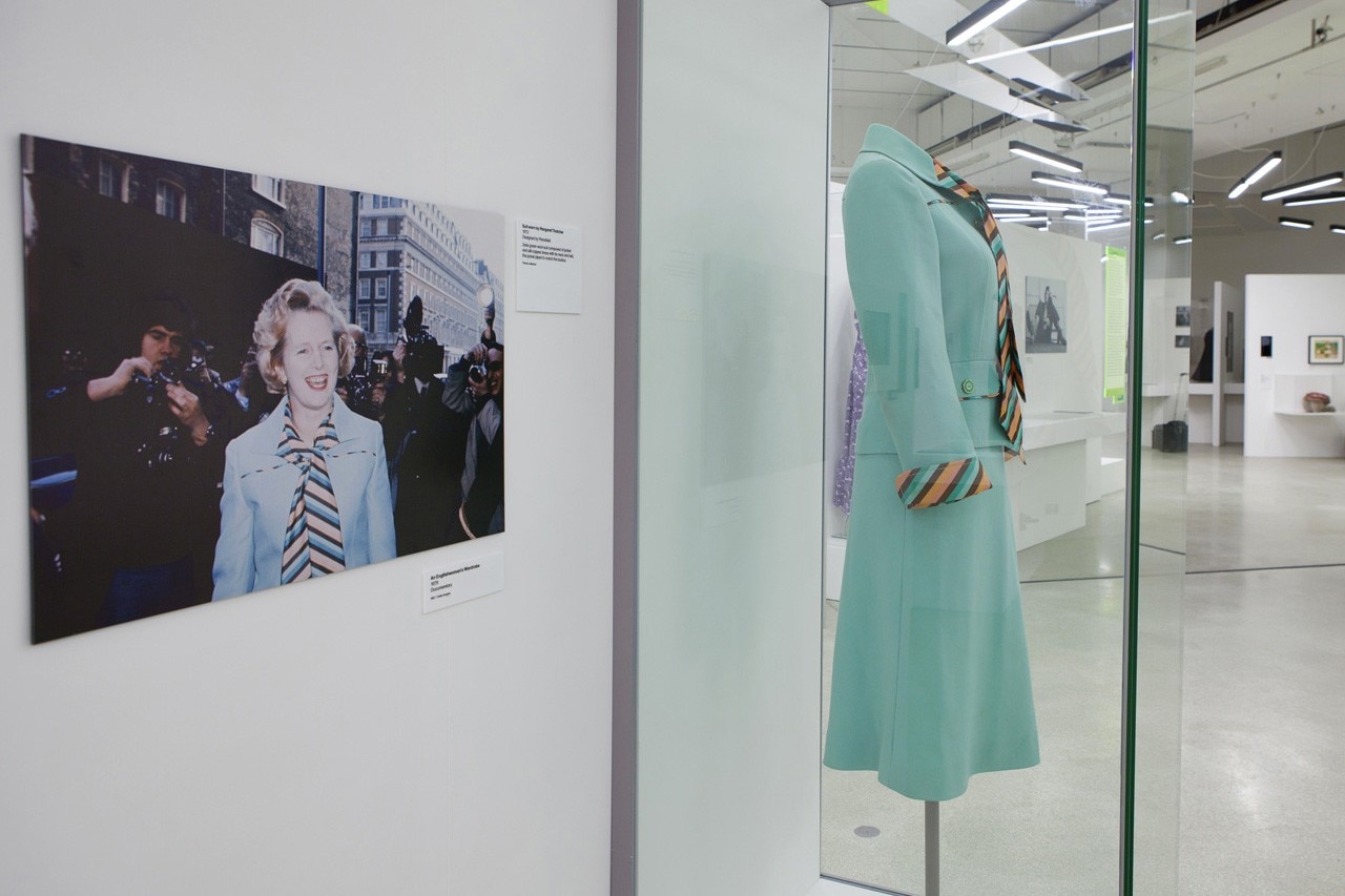 Mentre sempre più donne hanno ruoli di leadership della società, la mostra pone la questione di come rivalutare il ruolo della moda nella sfera pubblica – non una distrazione frivola, ma una componente essenziale degli strumenti della donna che lavora.