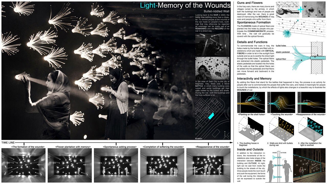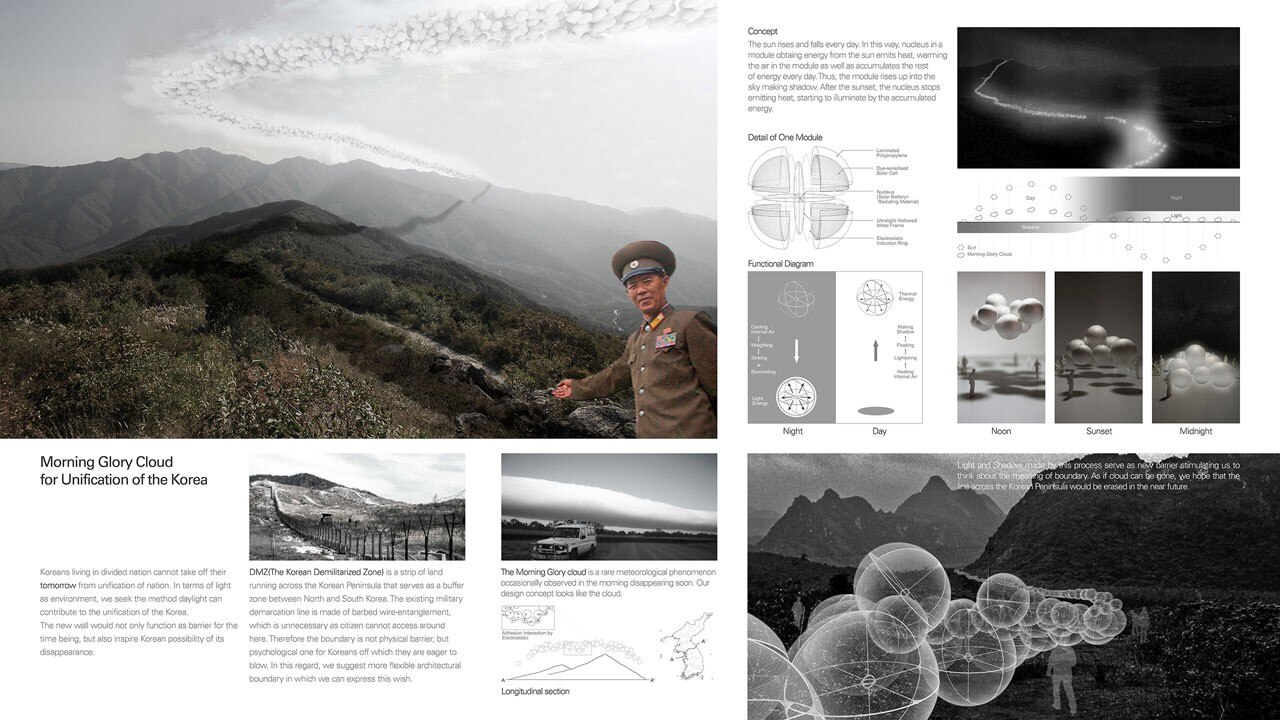 La giuria ha elogiato il progetto vincitore del secondo premio per gli aspetti fantastici che legano fantascienza e mondo reale in un approccio molto maturo, che anima una zona smilitarizzata con una nuvola artificiale. Il progetto “Morning Glory” è stato creato da due studenti di Hanyang University e Hongik University di Seoul, in Corea, come fonte di ispirazione per pensare alla possibilità della scomparsa dell’invisibile confine coreano.