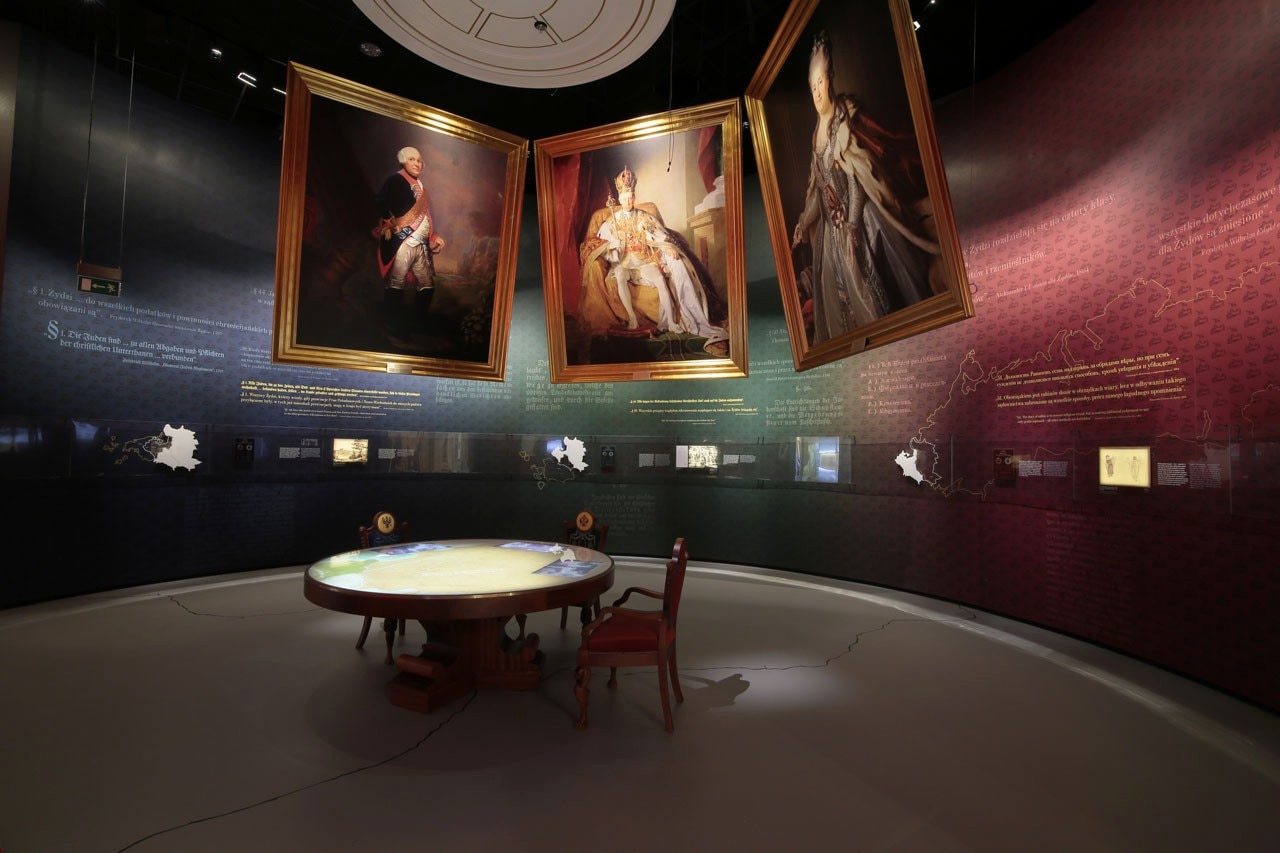 Lo studio di Mirosław Nizio ha lavorato alla progettazione e realizzazione della mostra per tre anni. Sia la distribuzione degli spazi che i materiali utilizzati sono subordinati alla logica della narrazione storica. La “galleria della foresta” che apre la mostra è un’installazione ispirata alle leggende relative all’arrivo e allo stanziamento degli ebrei in terra polacca. I dipinti e le decorazioni all’interno della galleria “dei primi incontri”, fatti a mano da artisti polacchi, fanno da sfondo alla storia dei destini dei coloni ebrei in un arco di tempo di diversi secoli, dal 960 al 1500. I dipinti sono stati sviluppati a computer per essere poi trasferiti su carta in scala 1:50. Nella fase finale le linee sono state riprodotte su intonaco minerale. La scenografia più essenziale della galleria “Paradisus Iudaeorum” che racconta l'Età d’Oro della comunità ebraica è il modello interattivo di Cracovia e Kazimierz, costruito in 6 mesi di lavoro.