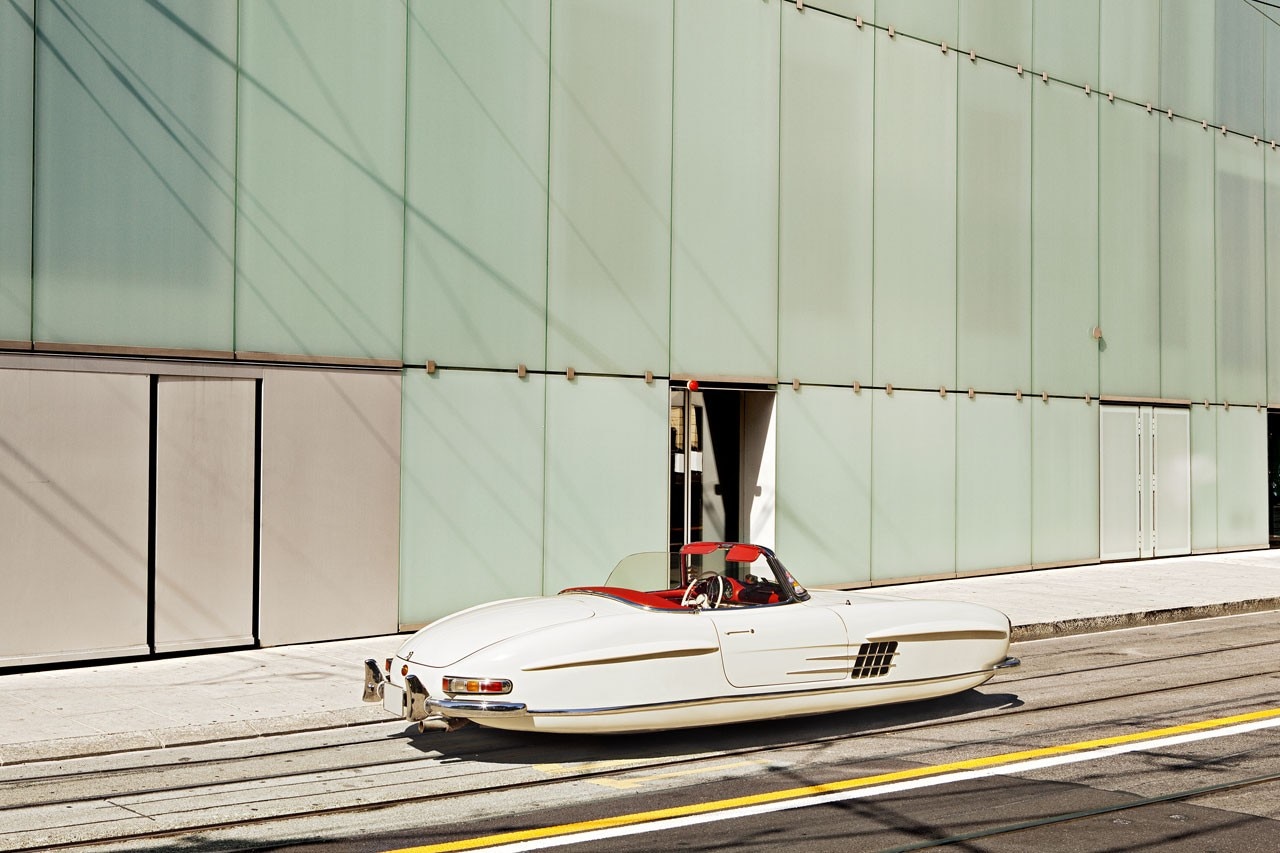 Per ottenere l’aspetto di automobili “volanti”, Marion ha dovuto applicare una tecnica di assemblaggio digitale per eliminare da queste bellezze classiche gli pneumatici e le cavità di alloggiamento delle ruote e collocare le auto su sfondi differenti, arrivando a sistemarle nello scenario giusto per ogni ritratto futuristico. Questi anacronismi fotografici hanno suscitato molto interesse quando l’estroso artista li ha pubblicati inizialmente in Rete. Amanti delle auto classiche, fan della fantascienza e appassionati di arte e fotografia hanno iniziato d’un tratto a seguire Renaud Marion.
