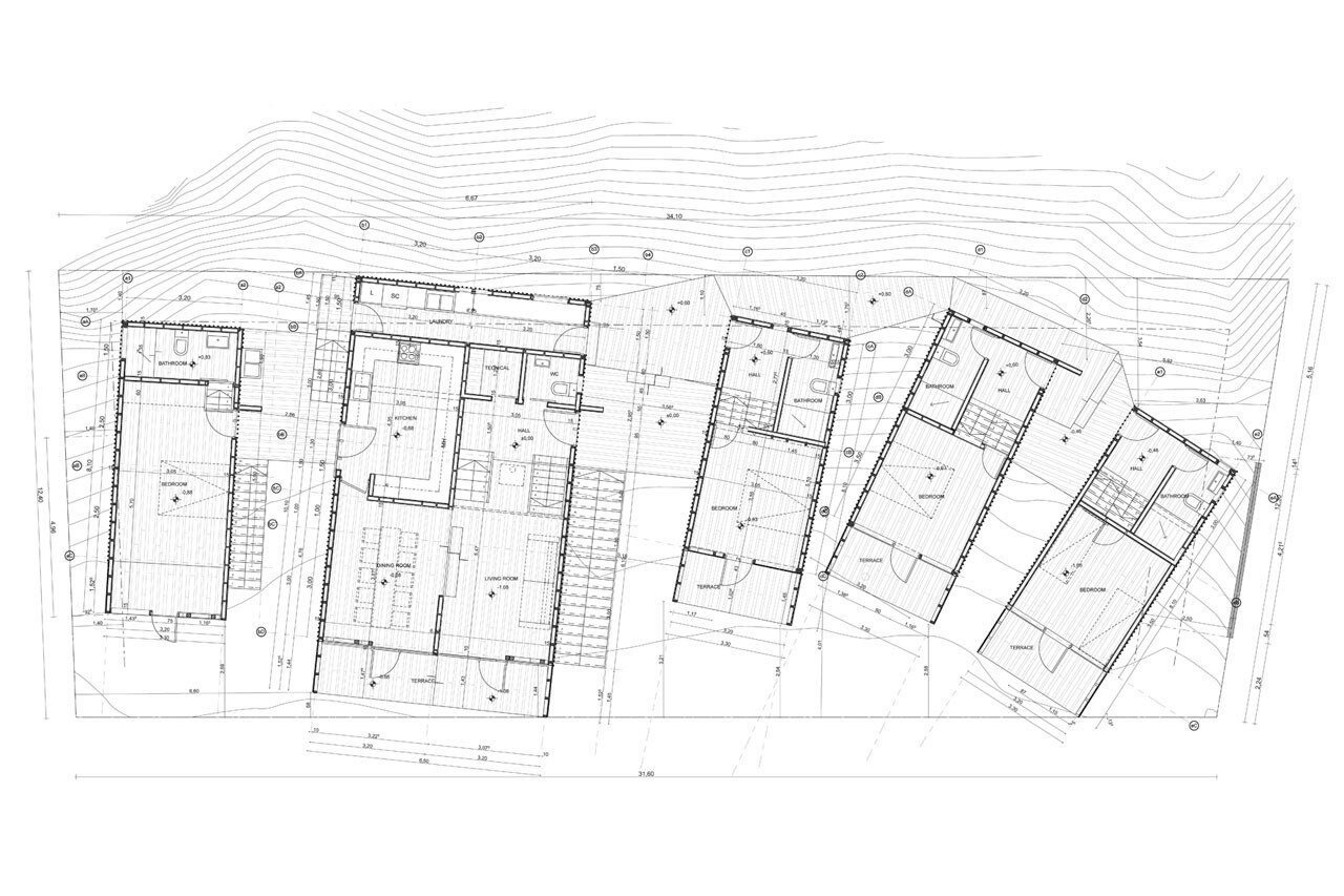 Il secondo aspetto fondamentale consisteva nell’ottimizzare le dimensioni di lunghezza più comuni del legno: la misurazione ha definito la larghezza dei diversi volumi che compongono il progetto. Questa decisione di per sé non ha prodotto risparmi ma la regolazione degli spazi in moduli adatti alla maggior parte degli elementi costruttivi (2,4 m) sì.