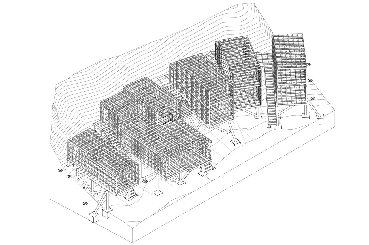 In altre parole, gli architetti hanno contattato l’artigiano responsabile per la tipologia costruttiva della zona – semplici architetture di pino segato – e hanno creato un catalogo di tecniche costruttive basate sulle soluzioni locali più comuni, riducendo i costi di trasporto e i margini di profitto della costruzione.