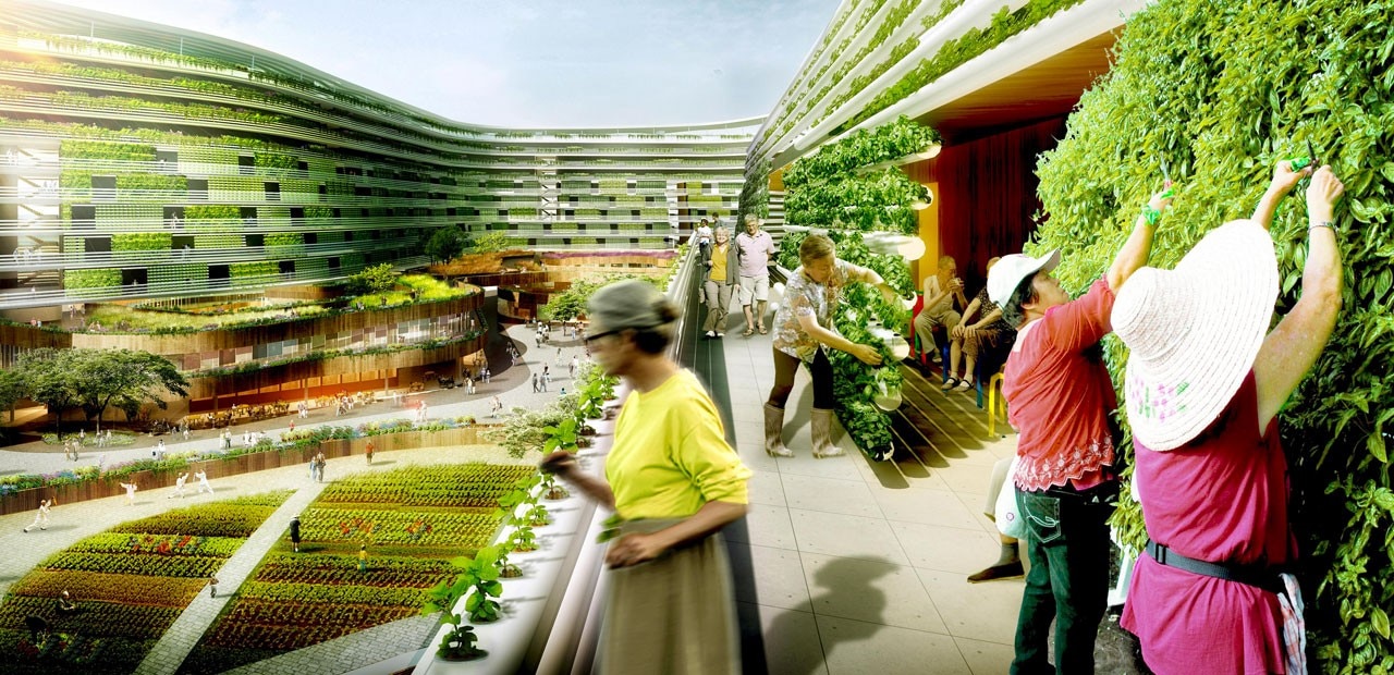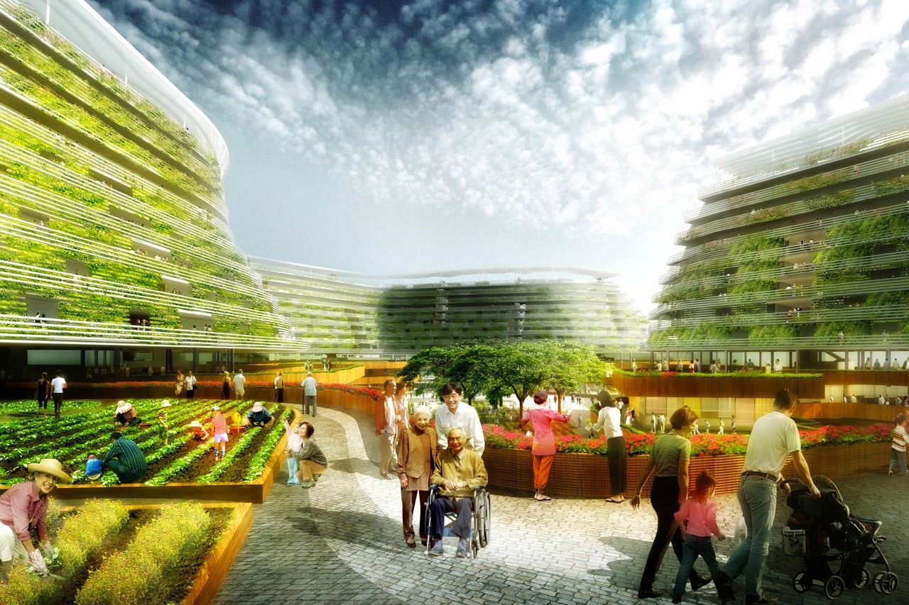 Home Farm consente agli anziani di vivere in un ambiente verde creato da una serie di orti, ai quali possono anche lavorare. Il concept introduce coltivazioni verticali idroponiche e tetti giardino in una struttura residenziale ad alta densità con alloggi flessibili, progettata per soddisfare le esigenze e le preferenze degli anziani.