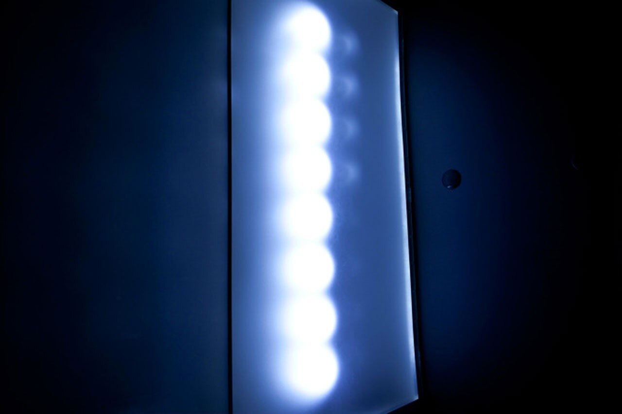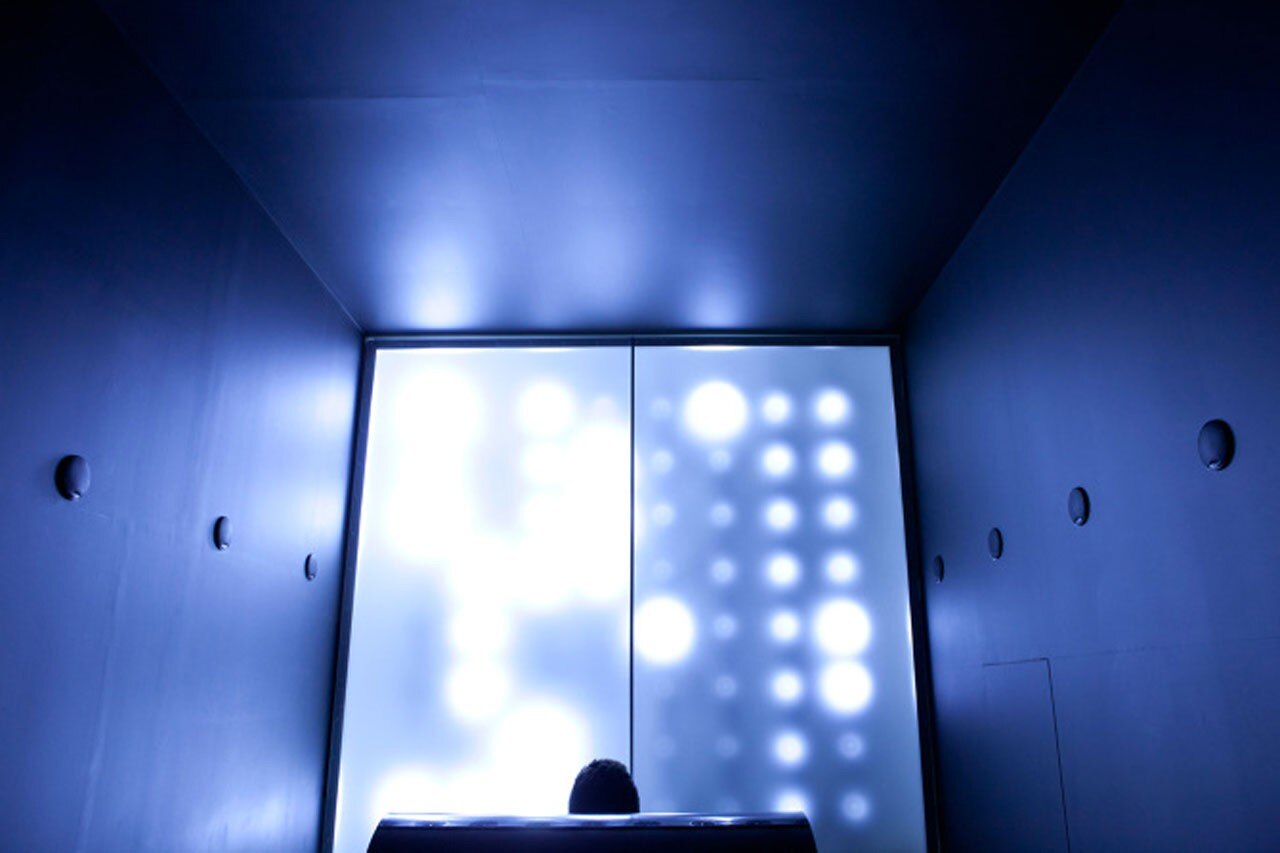 Anche la velocità di spostamento del suono nello spazio dipende da questi parametri. La luce è generata dalla trasformazione algoritmica dell’emissione di raggi X in particelle di luce modellate fisicamente, che influenzano anche gli stimolatori muscolari sulla seduta, producendo deboli scariche elettriche.