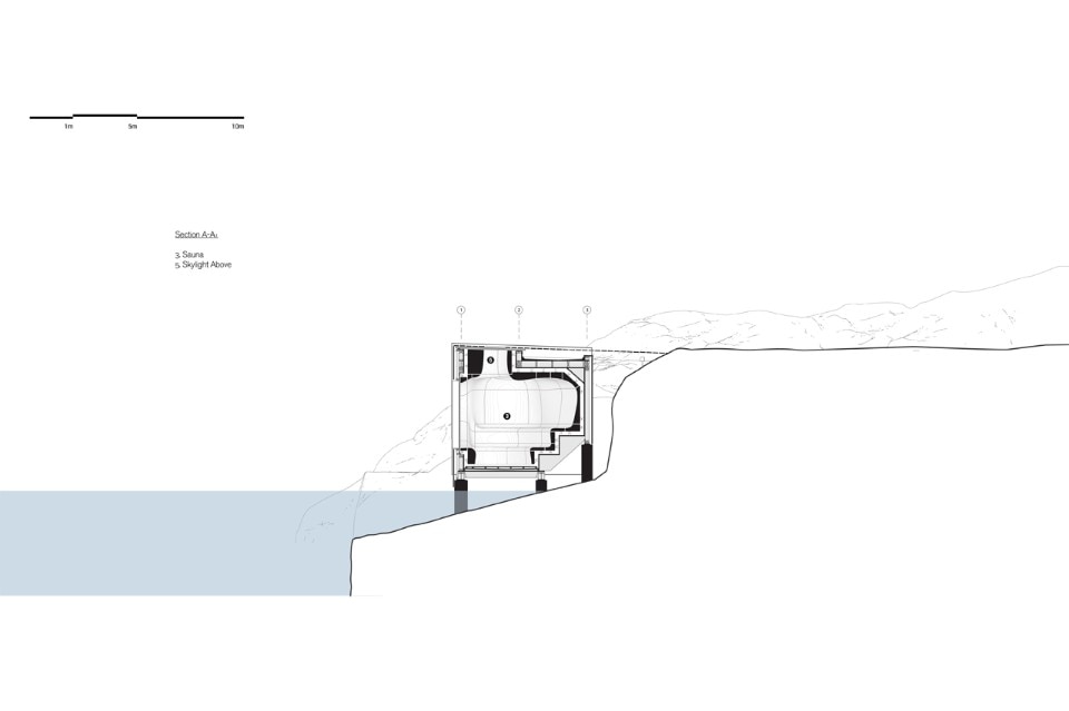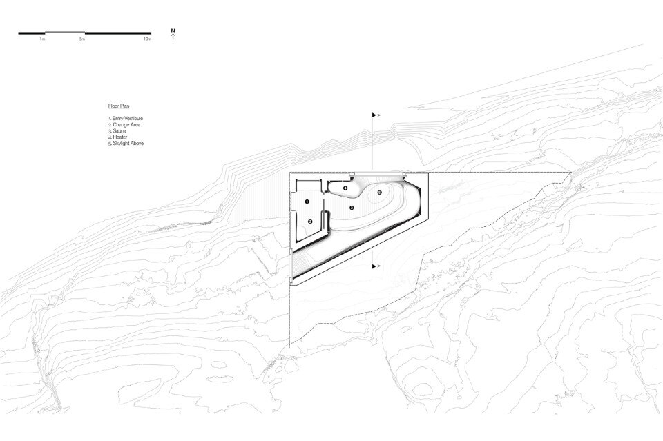 La sauna utilizza due forni ad alte prestazioni che garantiscono efficienza e controllo, mentre prese d’aria e ventilatori permettono alla costruzione di respirare e prevengono la formazione di muffe. Il resto dei sistemi si basa sul controllo dei flussi d’aria. L’isolamento è stato utilizzato non solo per proteggere i suoi componenti da un riscaldamento o un raffreddamento troppo rapido, ma anche per rendere la grotta più efficiente dal punto di vista energetico.