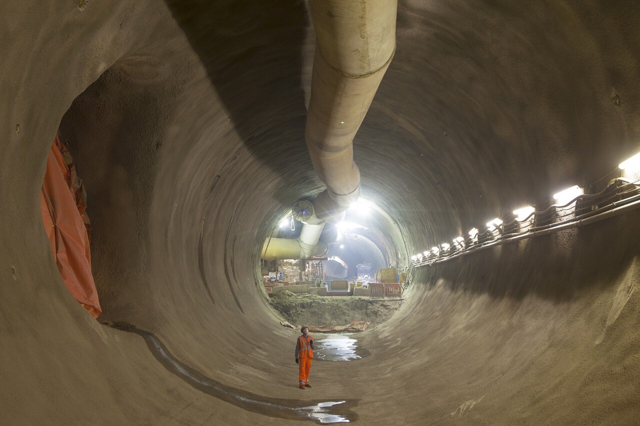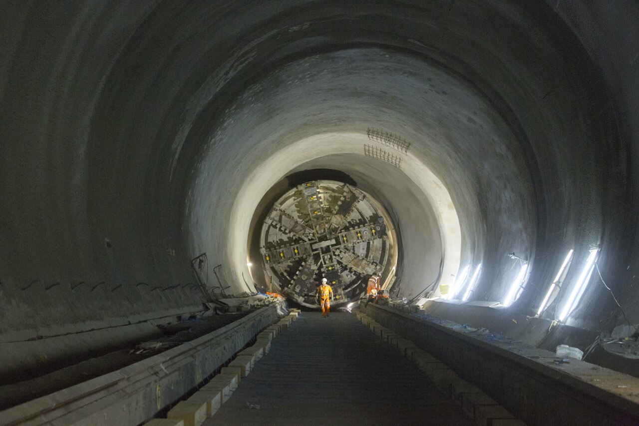 La macchina scavatrice Elizabeth a Whitechapel. La macchina, lunga 150 metri e pesnate diverse tonnellate, è uno delle otto utilizzate per Crossrail. Con quasi il 90% di scavi completati, questa è una delle due macchine ancora operative. Photo courtesy Crossrail