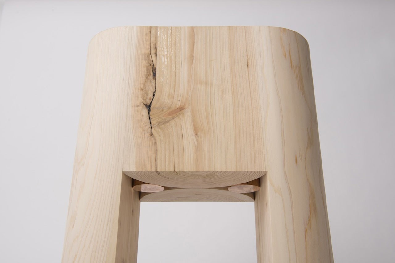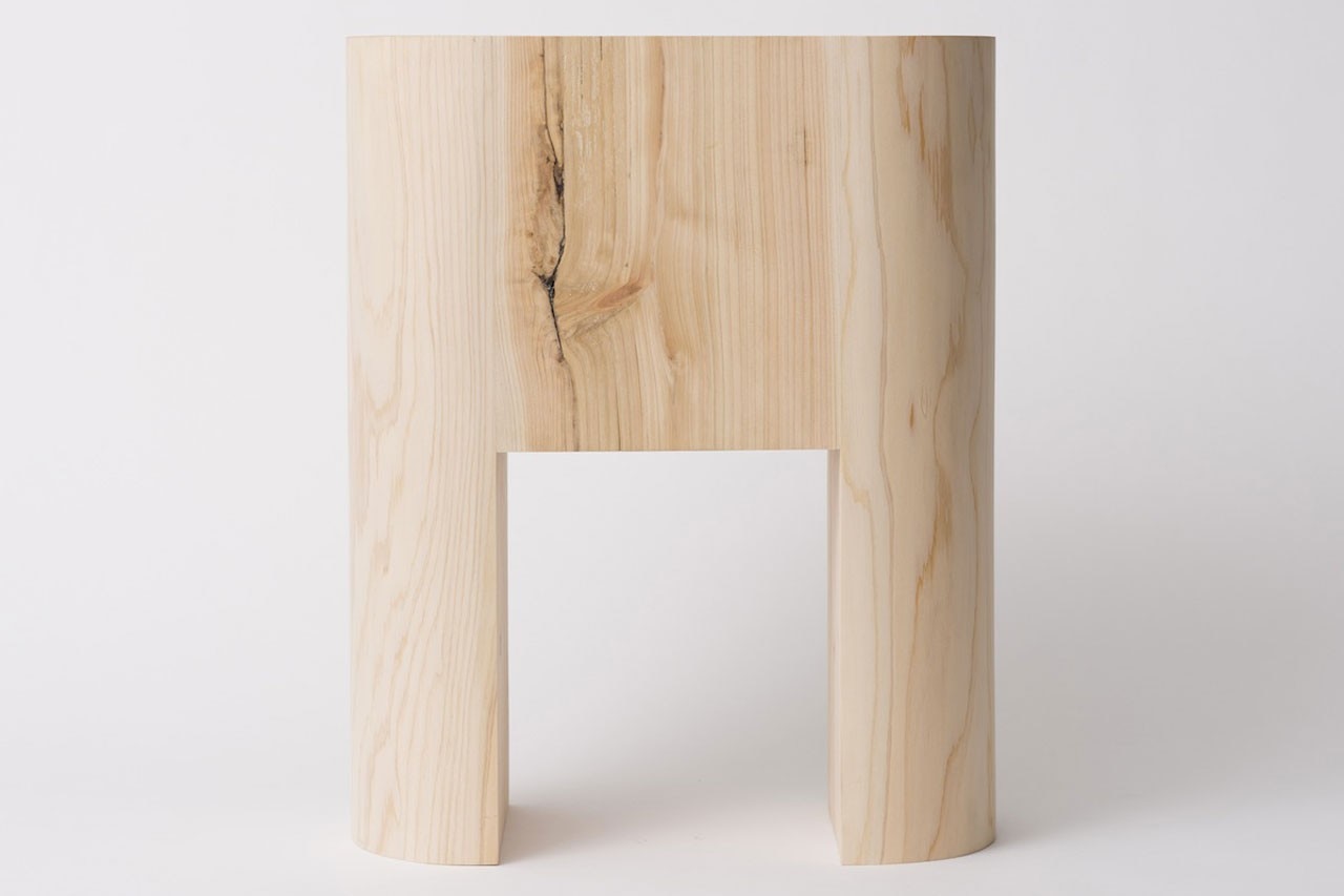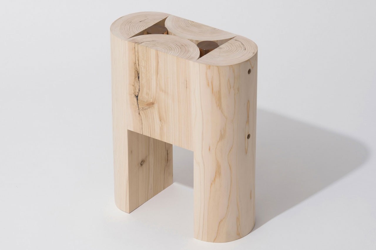 Questo sgabello è uno dei nuovi prototipi progettati che Futatsumata ha esposto alla mostra “Showcase” a Tokyo a novembre 2014.