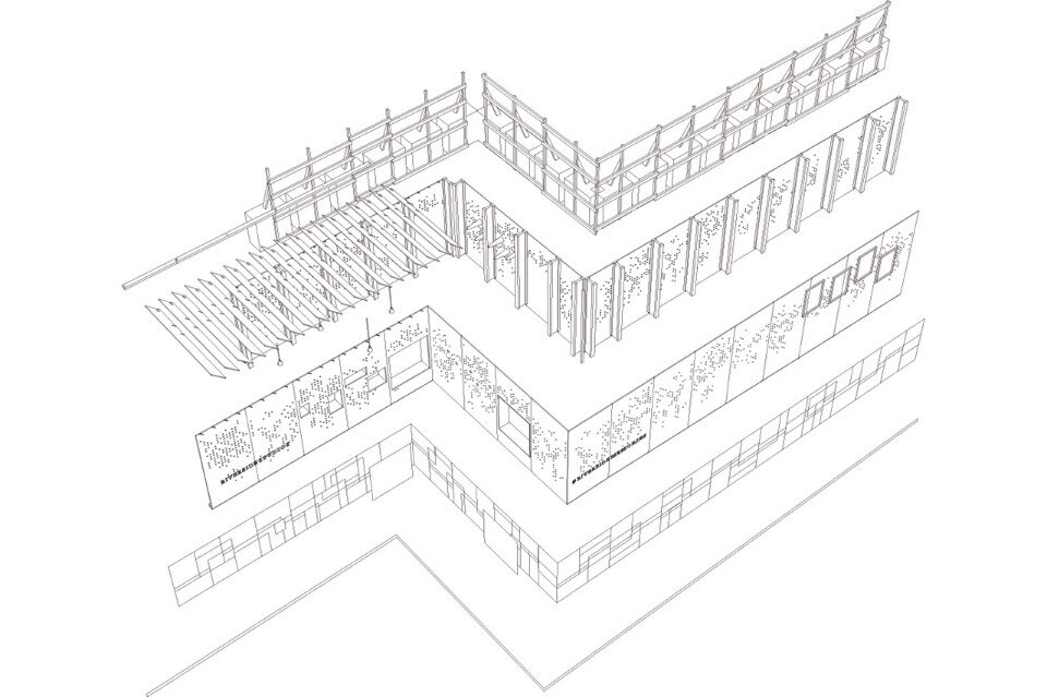 Il progetto di Aaron Bright e Emilio Koutsoftides si propone di sfidare la fisicità della recinzione come confine e cercare di coinvolgere attraverso l’interesse e l’interazione con ciò che è spesso una materialità opaca e imponente.