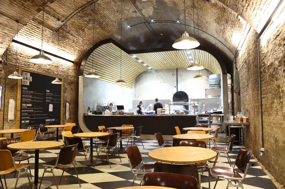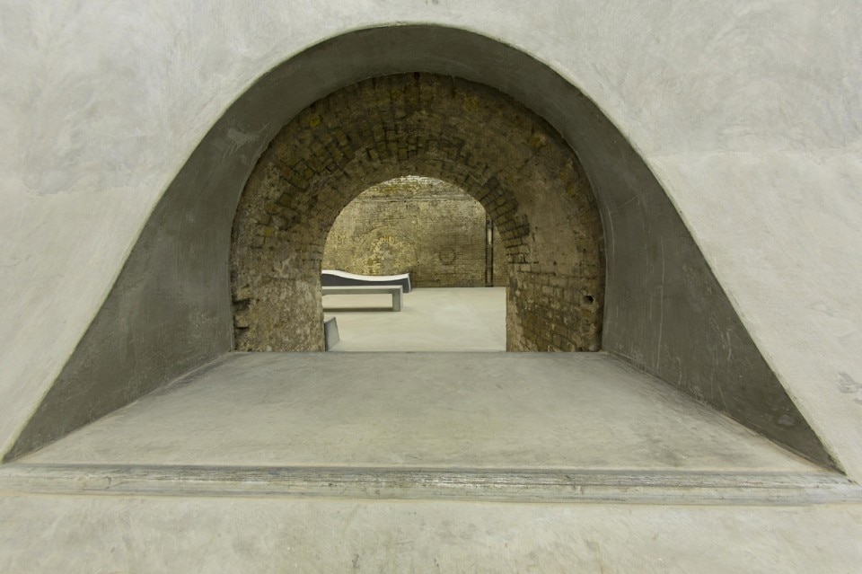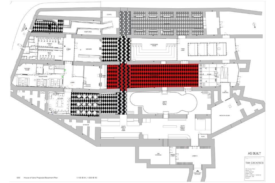Le cinque gallerie sono unificate dal pavimento in gomma, i cui pattern esagonali e a diamante sono ispirati alla suola delle scarpa Vans. Il pavimento in gomma fornisce una superficie pulita e confortevole ma allo stesso tempo crea visivamente un forte contrasto con le pareti di mattoni grezzi e il soffitto a volta.