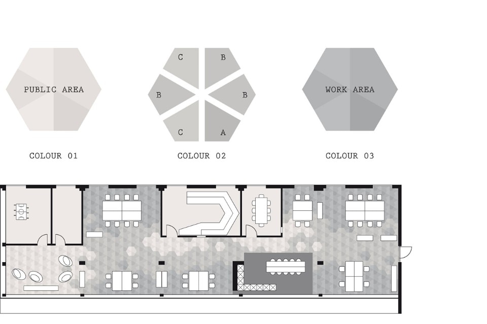 L’intento era quello di progettare un ambiente di lavoro per un’azienda in rapida crescita, con spazi aperti in equilibrio tra le aree di lavoro e quelle di riposo. Due sale conferenze centrali dividono il piano terra e creano nicchie che ospitano le zone di lavoro.