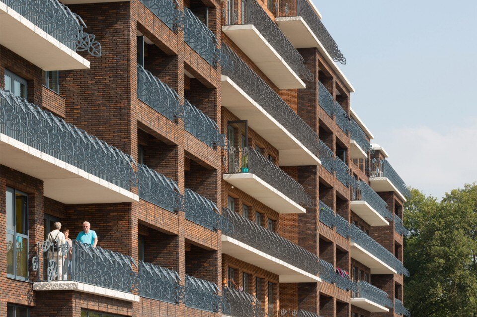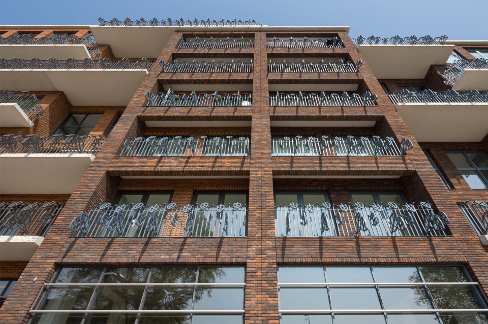 L’edificio Hof van Sevenhuijsen accorpa edifici alti per appartamenti da un lato e case basse sul lato opposto. Le case sono dotate di balconi alla francese, mentre gli appartamenti hanno balconi e terrazze, tutti con pattern di foglie diverse sulle ringhiere. Queste foglie aggettano dalla facciata, schermando la vista dal livello della strada, in modo da garantire la riservatezza per gli appartamenti, affacciati su una strada trafficata senza occupare superficie sul lato delle residenze.