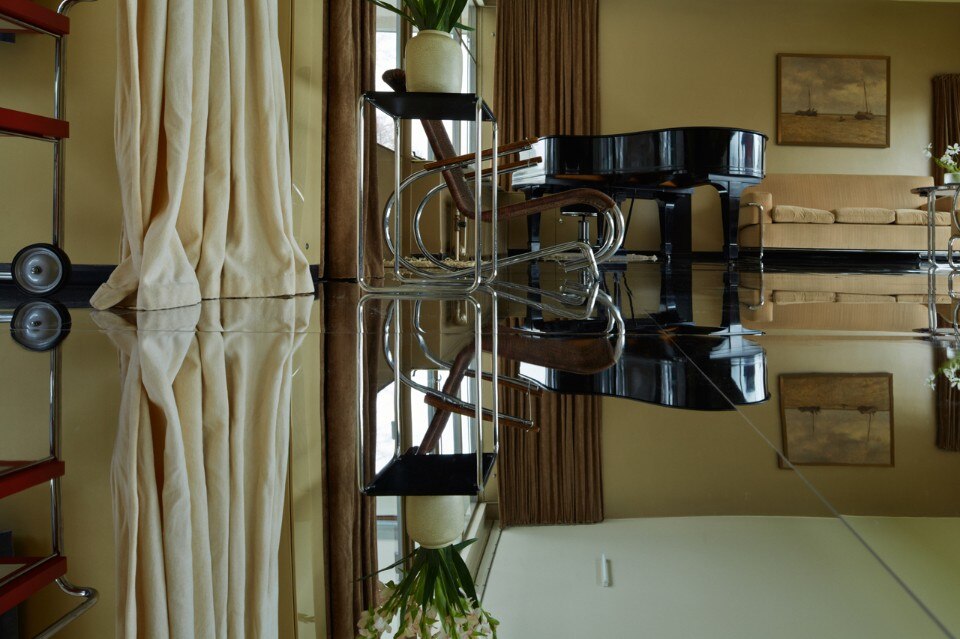 Inside Outside (lo studio fondato dalla designer di interni e del paesaggio Petra Blaisse) esalta questo effetto di “galleggiamento” con la semplice aggiunta di pavimenti riflettenti sia negli interni che nel giardino.