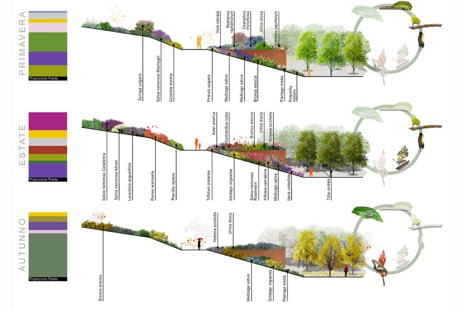 Tutto il materiale vegetale è stato scelto anticipatamente, a partire dall’inizio dei lavori, puntando alla massima qualità e richiedendo ai vivai, selezionati tra Lombardia, Veneto, Emilia e Toscana, l’utilizzo di particolari sistemi di coltivazione, per raggiungere gli standard qualitativi e dimensionali richiesti dal progetto.