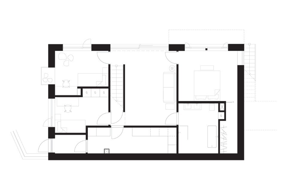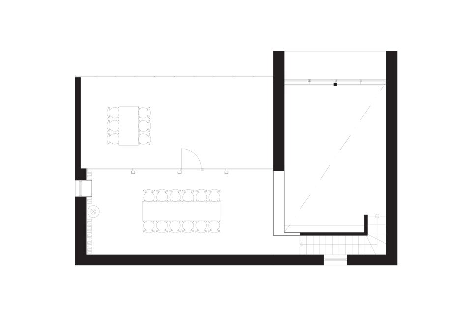 Kjellgren Kaminsky Architecture, Villa Bondö, Gravsjön, Mölnlycke, Svezia. Pianta del piano interrato