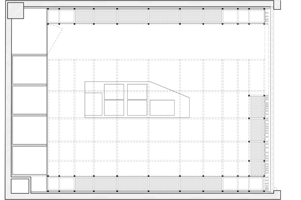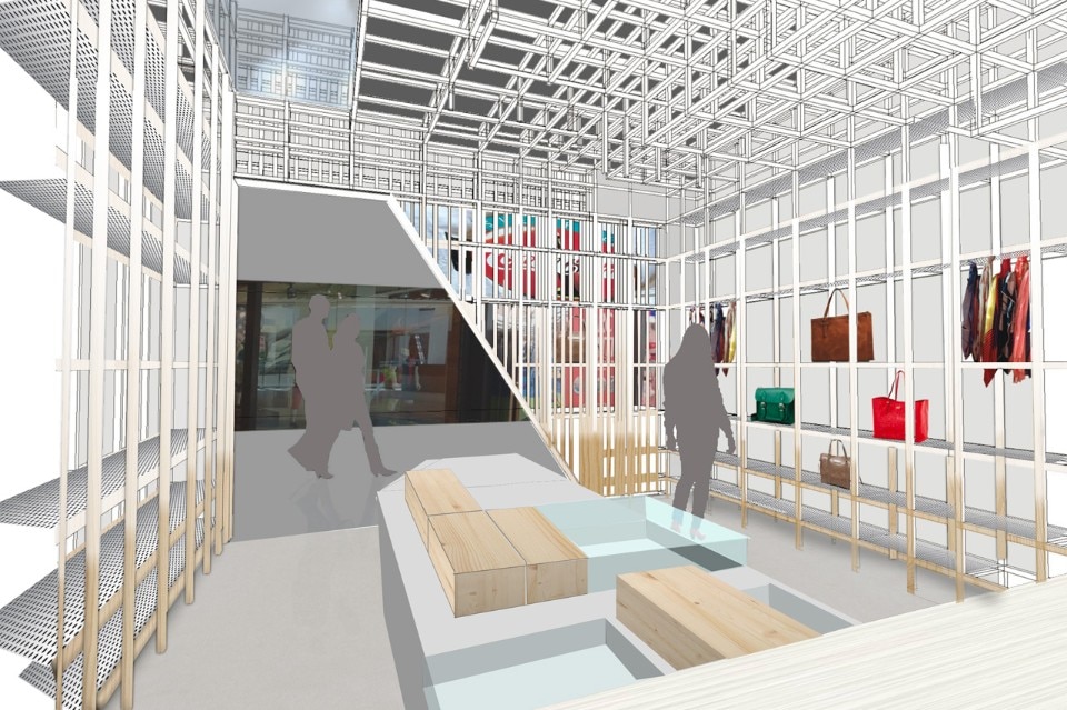 La griglia imposta un sistema espositivo adatto per ogni accessorio, pur garantendo la versatilità dell’esposizione facendo in modo che gli elementi possano essere riorganizzati con l’arrivo di nuovi prodotti. La luce funziona come elemento compositivo che sottolinea il ritmo della griglia e uno specchio sul soffitto ingrandisce visivamente lo spazio.