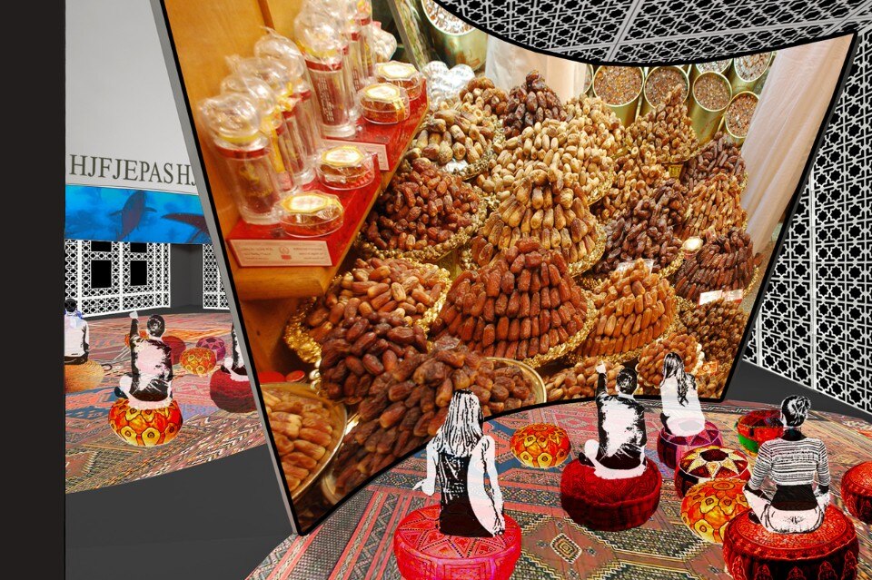 La preparazione dei piatti tipici algerini sarà l’argomento trattato nella seconda zona, ricavata nell’angolo accanto all’ingresso del ristorante e delimitata da un grande schermo curvo. In quest’area, in un filmato di 6 minuti, una madre insegnerà alla figlia (e ai visitatori) l’arte della cucina tradizionale.
