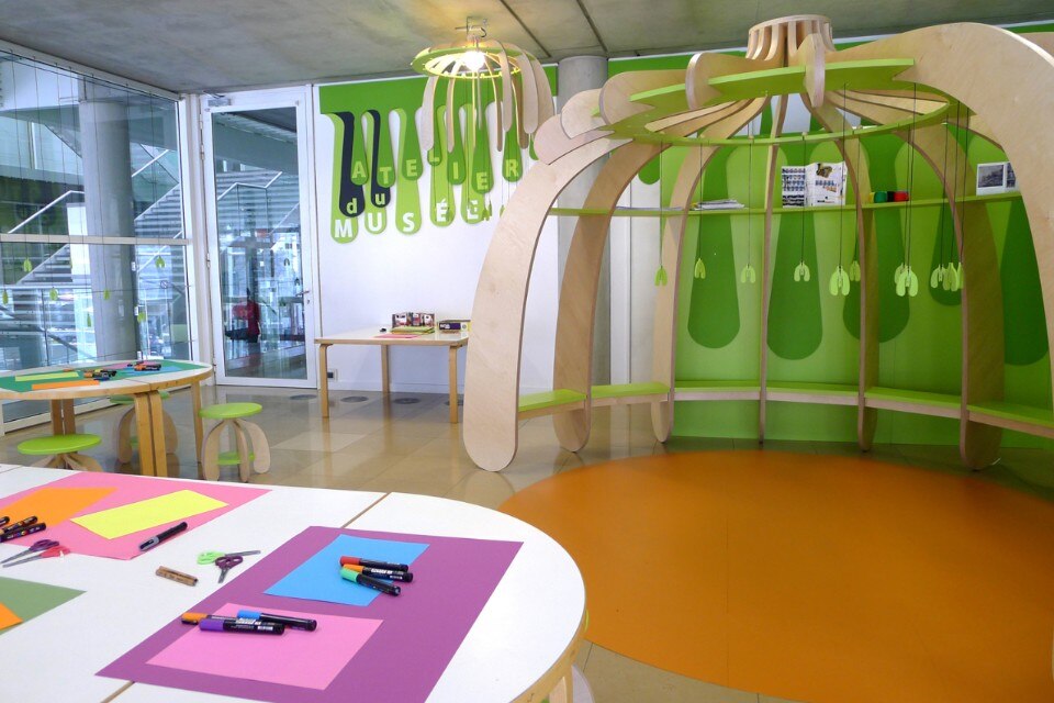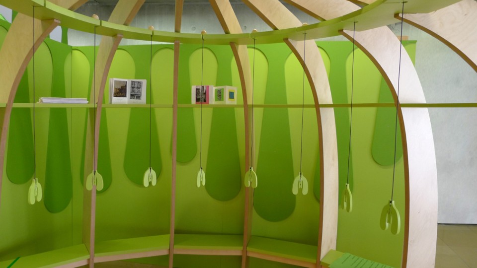 Lo spazio è diviso in due: la piazza con una mini serra piena di piante immaginarie che richiama la lobby. Al centro, la mamma salice piangente: uno spazio protetto per diverse attività o mettersi a leggere. E tutto intorno, piccoli germogli che impollinano lo spazio e lo rendono evolutivo.