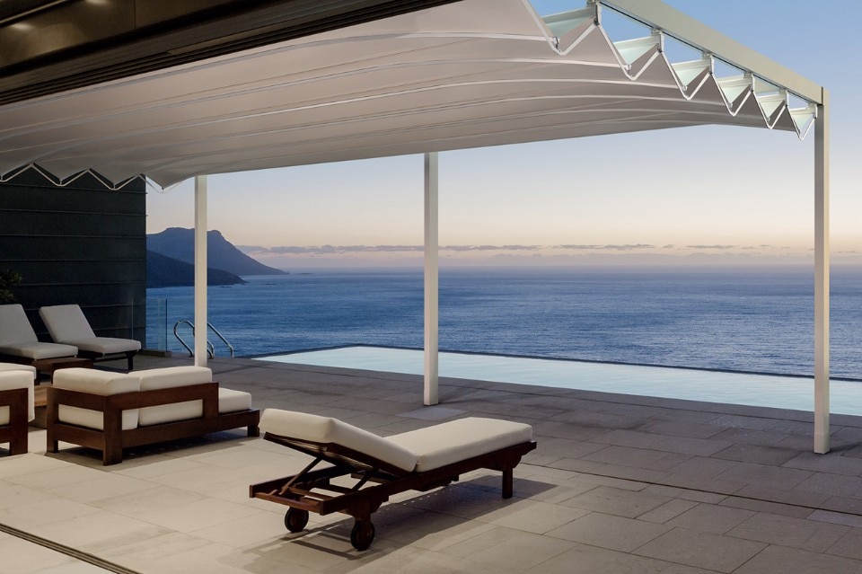 In mostra a MADE expo anche Med Open Fly, evoluzione del sistema brevettato Fly inserito in una struttura geometrica e rigorosa, che sfrutta la tecnologia del PVC oscurante con filtri UV per mantenere l’ambiente fresco. Il telo in pvc opatex, ad elevata protezione termica (TS=0) garantisce lo scarico laterale dell’acqua piovana pur in assenza di inclinazione della pergola.