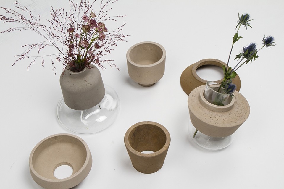 Il vetro acquisisce importanza dal contrasto tra la sua superficie lucida e liscia e quella materca e rugosa del calcestruzzo. Ogni oggetto racconta una storia, e porta le tracce del suo processo di produzione. Gli oggetti sono narratori, ci rendono consapevoli della quantità di cose intorno a noi che contengono sabbia, confutando l’idea chea sia un materiale poco utilizzabile.