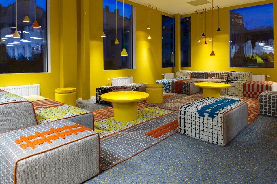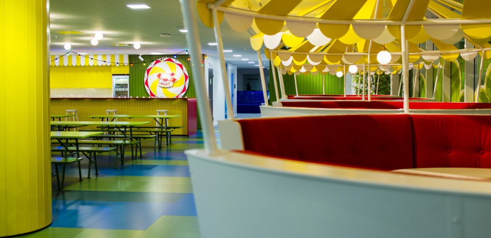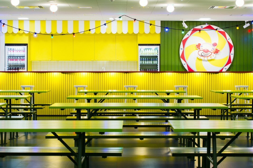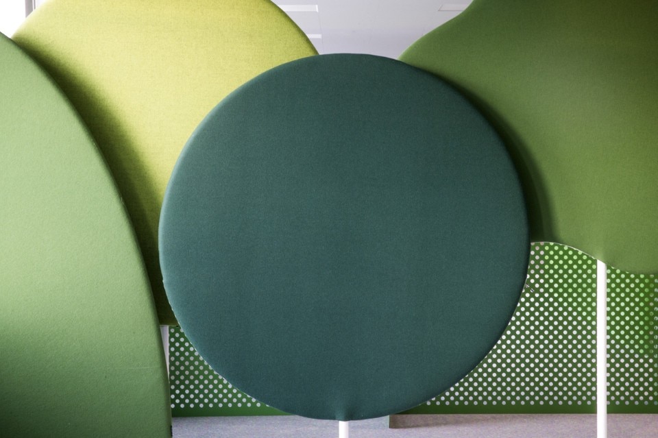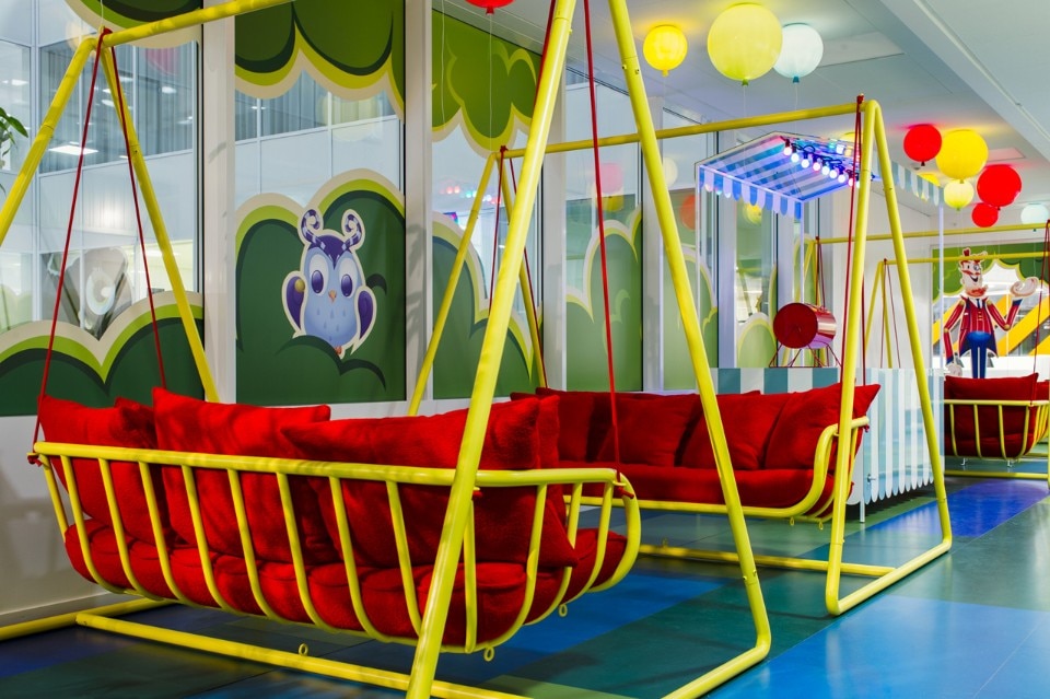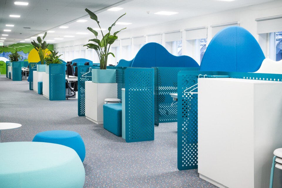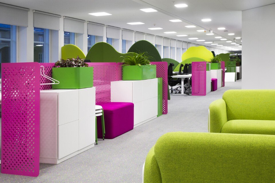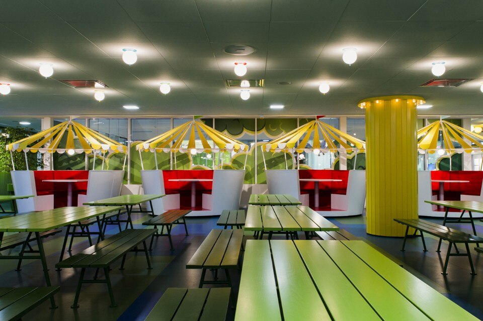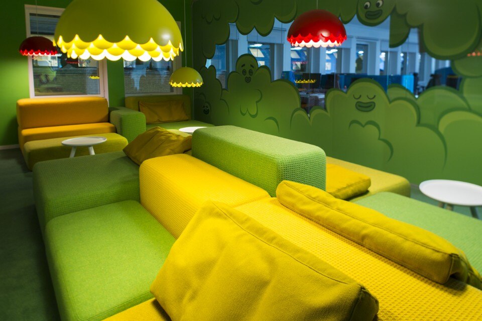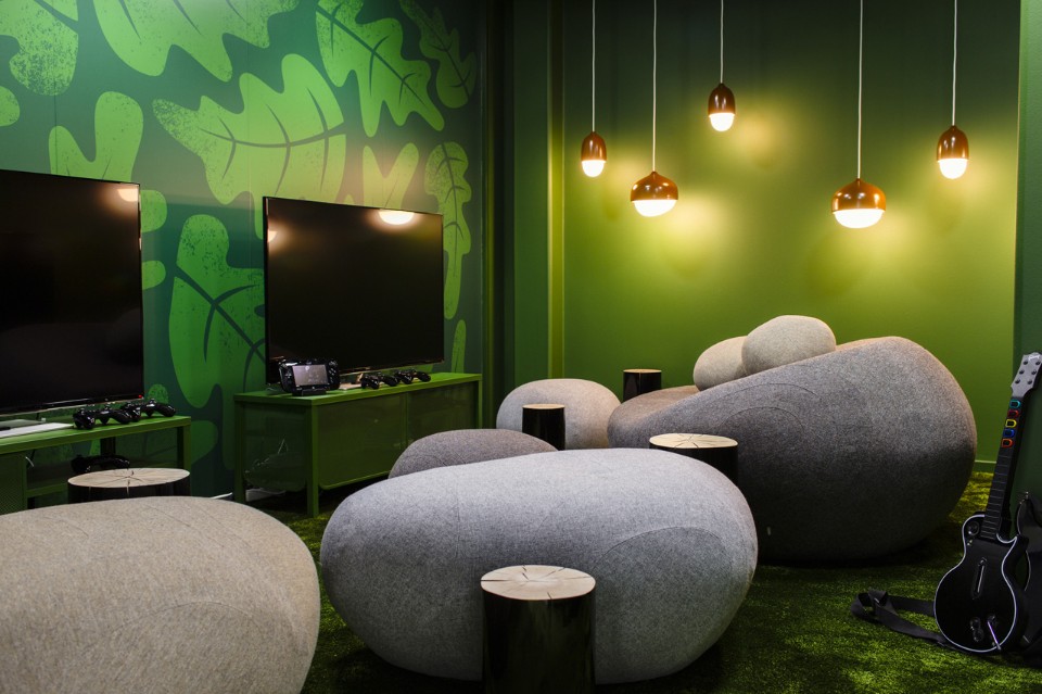 Distribuiti intorno agli uffici si trovano molti posti per la concentrazione o la conversazione, spazi di libera fruizione, una “cabina” isolata nel sottomarino, bus o tram, un rifugio nella biblioteca e uno spazio per la concentrazione silenziosa o di relax davanti al fuoco. Il più grande spazio di incontro condiviso è il Pavilion Park – un salone per le feste ispirato ai tradizionali parchi pubblici della Svezia combinato con un tocco di luna park, dove tutti i lavoratori possono ritrovarsi per i pasti o i grandi eventi.