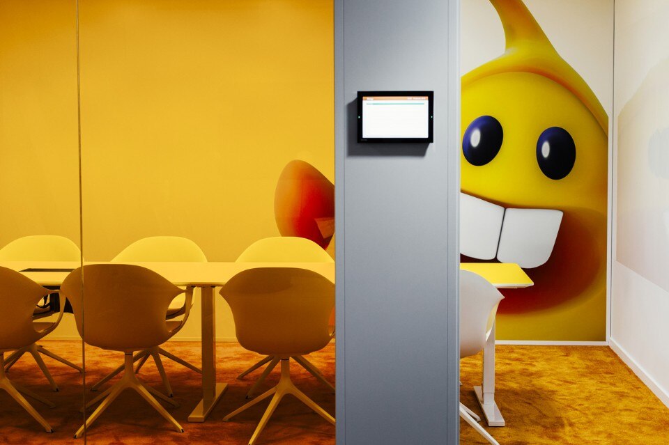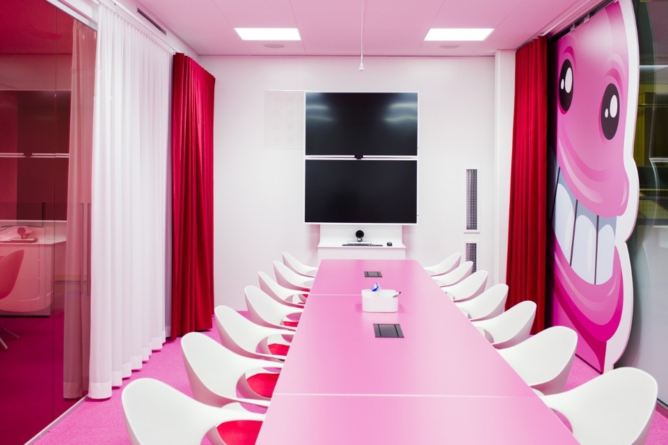 Le sale riunioni hanno varie dimensioni per adattarsi alle diverse esigenze. Ogni stanza ha la sua grafica che riflette il concetto della zona sulle pareti e sul vetro. Questo crea un diorama che fornisce un’immagine generale in termini di prospettiva e di scenografia.