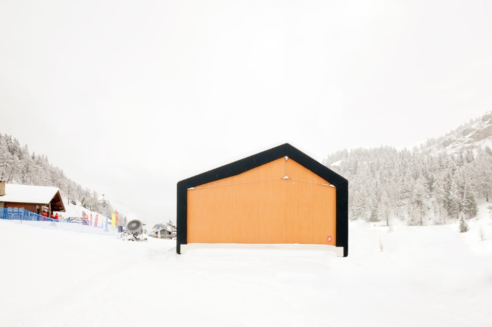 La prefabbricazione di tutti gli elementi ha consentito di costruire la nuova Scuola Sci Courmayeur secondo i piani e in tempo per l'inizio della stagione sciistica in una settimana. Solo la via per raggiungere il cantiere era piuttosto insolita, perché nel territorio alpino ad alta quota non arrivano strade. La maggior parte degli elementi è stata portata a 1.700 m con camion a quattro ruote motrici. Gli elementi della facciata in vetro realizzati su misura sono stati trasportati da valle mediante elicottero.