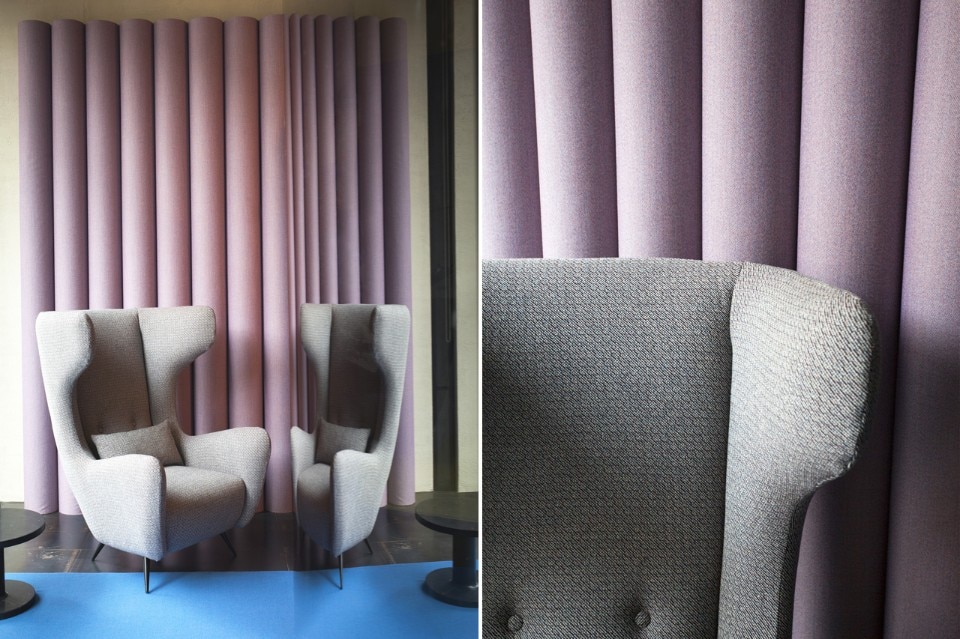 In occasione del lancio europeo Studiopepe mette in scena un paesaggio domestico astratto le cui geometrie esaltano il disegno dei tessuti, costruendo una vetrina briosa e sofisticata, fatta di colore, trame e contrasti.
