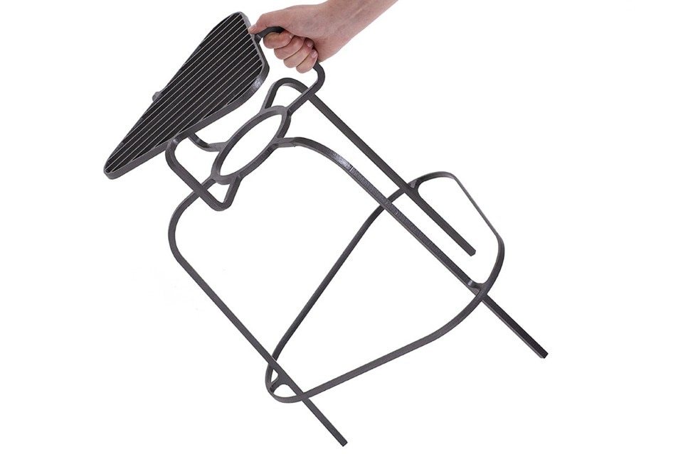 Ferro si compone di elementi d’arredo e accessori ispirati alle griglie dei bracieri ancora prodotti e venduti nelle botteghe di via Calderai. La collezione raccoglie cinque sedute, un tavolo, sei supporti per vasi da fiore e un fermaporta. Ogni pezzo è realizzato con lastre metalliche di 5 o 10 mm di spessore, tagliate a controllo numerico e saldate a mano da uno degli artigiani più giovani della zona.