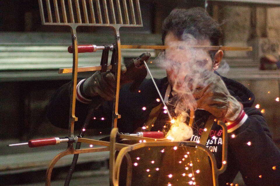 Vittorio Venezia, OfficineCalderai. Enzo Zerbo, uno dei più giovani artigiani della via Calderai, realizza le saldature della collezione Ferro