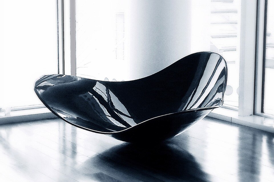 Kulla nasce dalla volontà di creare un’onda tridimensionale. Lo spessore minimo e l’estesa superficie sono consentiti dall’utilizzo di fibre di carbonio. Kulla inverte il principio classico di poltrona eliminando le gambe d’appoggio e posandosi direttamente a terra con il supporto di un impercettibile perno metallico che le conferisce stabilità e ne consente la rotazione a 360°.