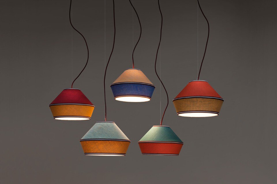 Il grande Chandelier, che reinterpreta la tipologia tradizionale del lampadario imponente, verrà completato sul posto durante il salone con passamanerie Dedar. Sempre di Dedar è il tessuto in lana Modo utilizzato per Patio, il prototipo di un paravento composto da 4 pali in legno di rovere e un sistema di lance orizzontali in ferro tropicalizzato che sostengono i 18 fazzoletti di tessuto, originariamente teli da sdraio.
