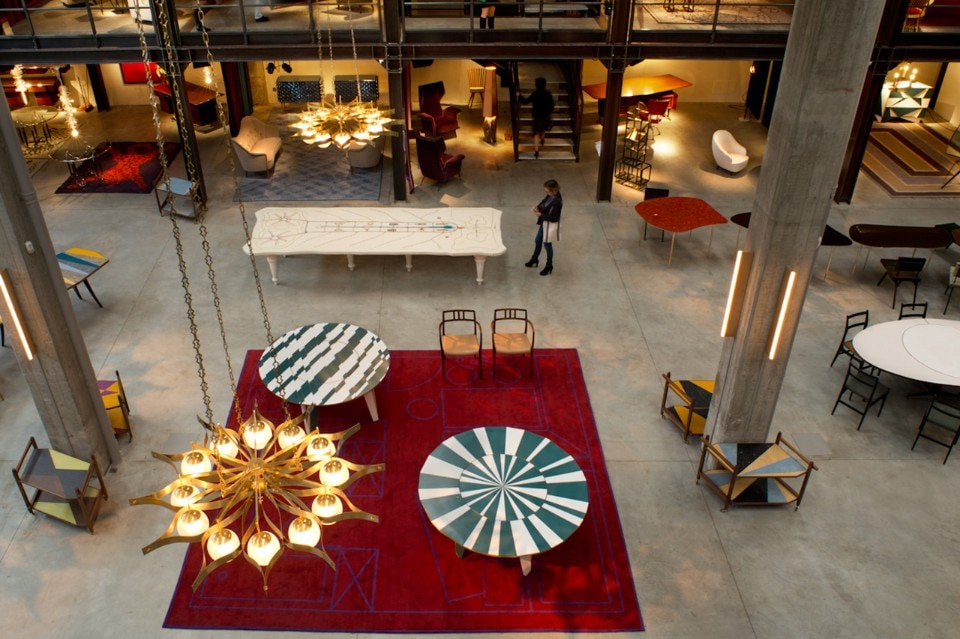 Nilufar Depot è stato inaugurato con un grande evento privato: una cena placé servita nel grande atrio centrale allestito con tavoli e sedie d’autore, ciascuno diverso dall’altro.