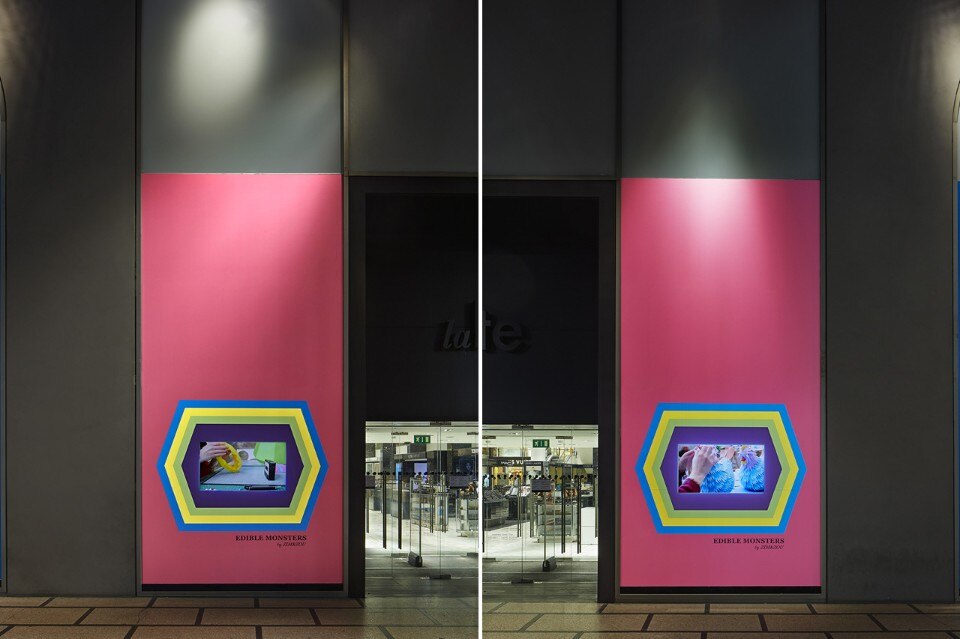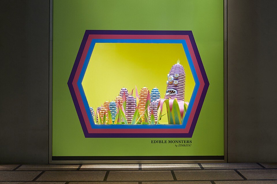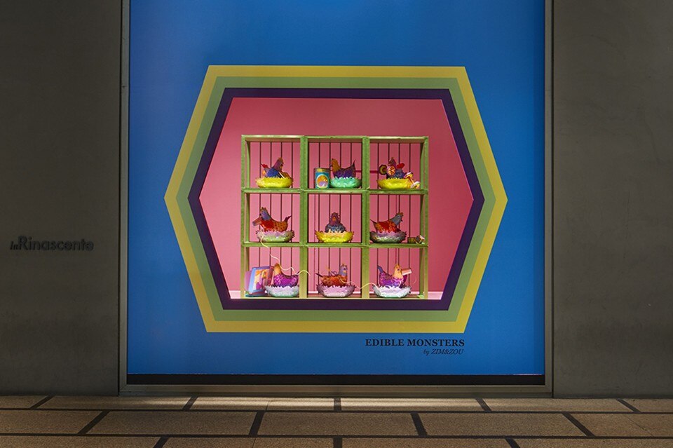 Zim&Zou, il duo creativo di origine francese composto da Lucie Thomas e Thibault Zimmermann, illustra in ciascuna delle 6 vetrine un preciso modus operandi della moderna industria alimentare, creando un coloratissimo universo di carta, fatto interamente a mano. Due vetrine sono invece destinate al video di making of che mostra gli artisti impegnati nella creazione dell’installazione.