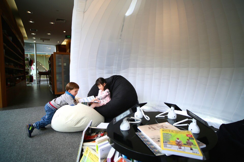 Il progetto dello spazio di lettura prende la forma di un coniglio immerso nel suo mondo. Con le sue cuffie, affacciato alla vetrina del negozio, il coniglio è come i lettori – perso nei propri pensieri, immagina mondi lontani. Si tratta di uno spazio confortevole dove i visitatori sono liberi di sedersi o sdraiarsi, ascoltando i suoni della loro Wonderland personale.