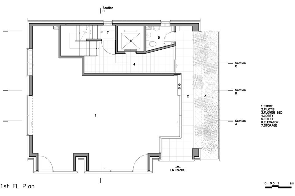 AND (Architecture of Novel Differentiation), The Gablepack, Kyeonggi-do, Corea. Pianta del piano terra