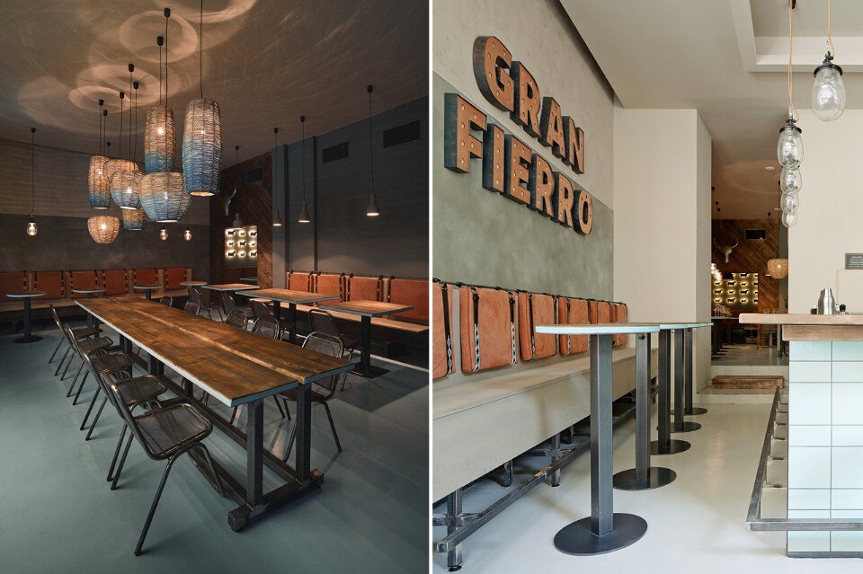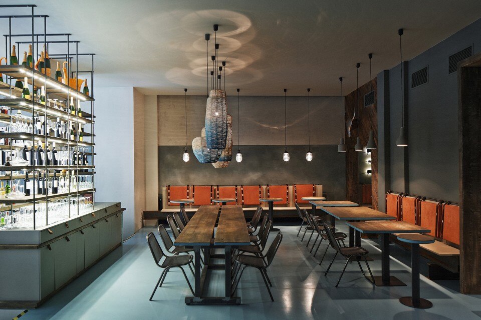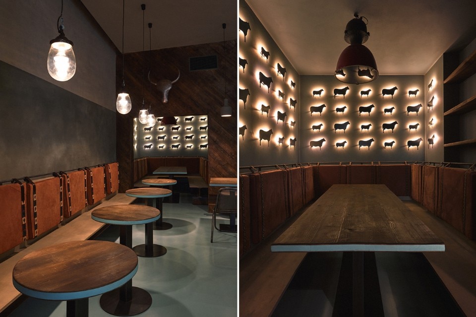 Altro elemento importante dello spazio è la cucina visibile non appena si entra nel ristorante. Tutti gli ambienti sono arredati con tavoli in legno, strutture in metallo e sedute in cuoio argentino.