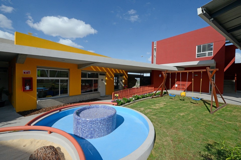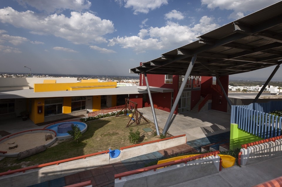 I colori dei volumi principali seguono varie tonalità di colori primari e secondari che formano una sorta di “cerchio di colore”. L’idea è che i bambini siano in grado di identificare ogni spazio e ogni elemento architettonico in un modo diverso e divertente. La mobilità e la sicurezza dei bambini sono stati un aspetto importante in fase progettuale. Molti elementi sono pensati per sviluppare le capacità ludiche e motorie.