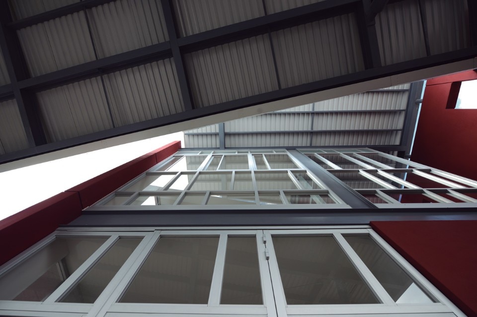 Il cortile è il cuore della scuola, il principale spazio comune che tutti condividono, dove giocano i bambini, dove si svolgono le attività di gruppo e quelle con i genitori. Il sito ha una topografia ripida,per questo l’asilo è stato progettato su due livelli, seguendo l’andamento del terreno.