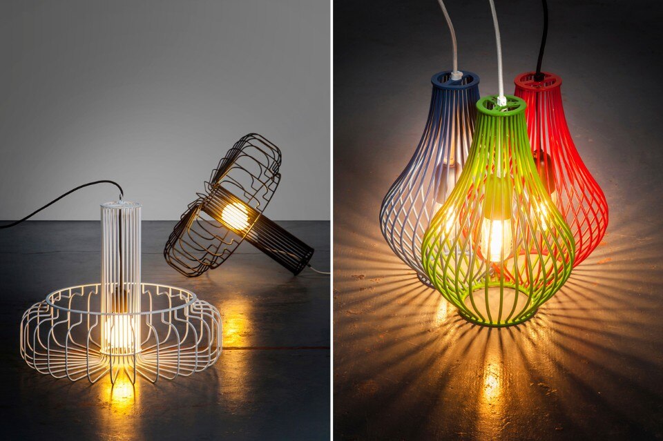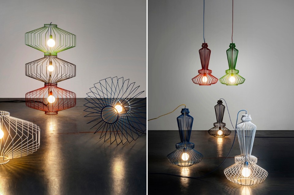 I designer israeliani di Studio Beam hanno disegnato una collezione di lampade di forme diverse, che condividono il contorno strutturale puro fatto di filo metallico curvato.