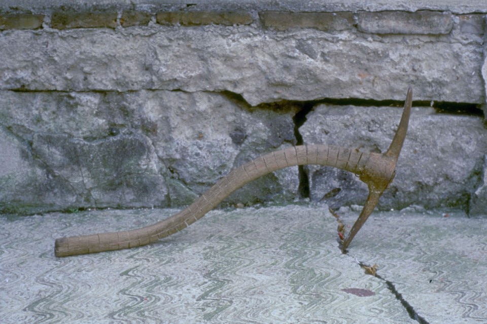 Damián Ortega, Pico Cansado, 1997. Piccone in legno, 92 x 54 x 8 cm.
