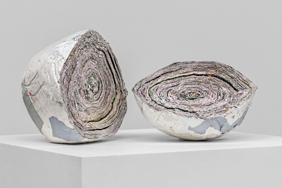 Damián Ortega, Estratigrafía 4, 2012. Giornale, carta e colla, 21,5 x 33,5 x 27,5 cm, 14 x 31,5 x 30 cm. Courtesy l'artista e kurimanzutto, Mexico City