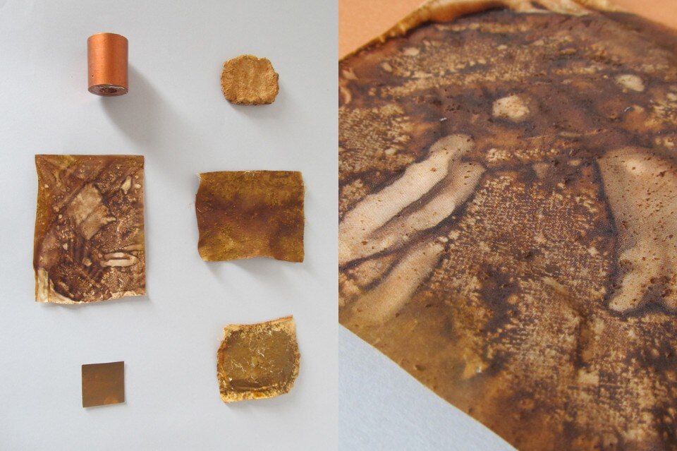 Ispirandosi a questa tecnica tradizionale di trasformazione del colore, la designer colombiana Laura Daza ha sviluppato una serie di esperimenti a diverse fasi di riscaldamento per caratterizzare le transizioni indotte termicamente. Vari gradi di calore producono una serie di sfumature che vanno dal giallo, al rosso al marrone rossastro.