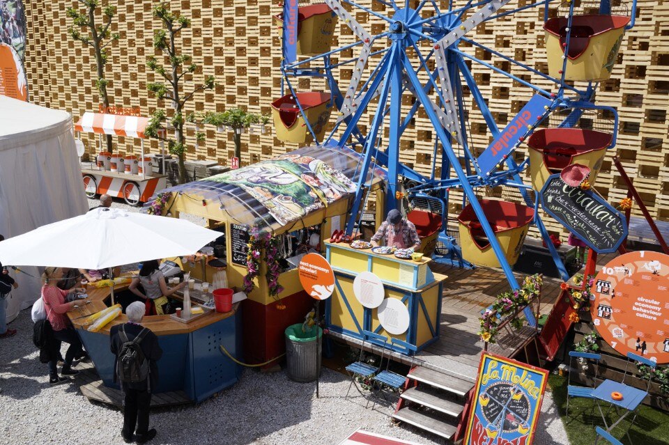 Uno dei punti forti del padiglione è La Molina, l’unico ristorante al mondo su una ruota panoramica.