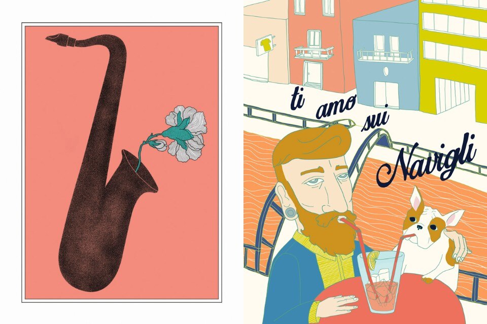 A sinistra: Erika Barabino, Introspezione, Porta Genova. A destra: Emilia Patrignani, Ti amo sui Navigli, Navigli
