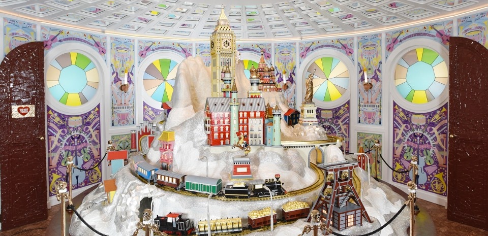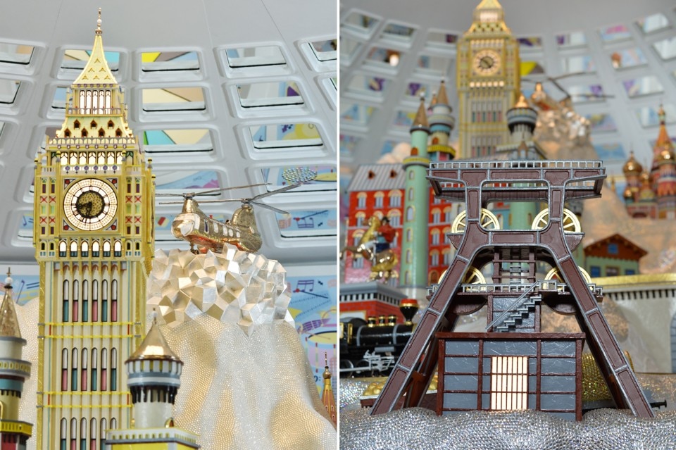Al centro è posto un enorme Paper table rotondo con elementi in bronzo lucidato circondato da una ringhiera in metallo fuso con una corda per mantenere la giusta distanza tra lo spettatore e la grande scultura posata sul tavolo.