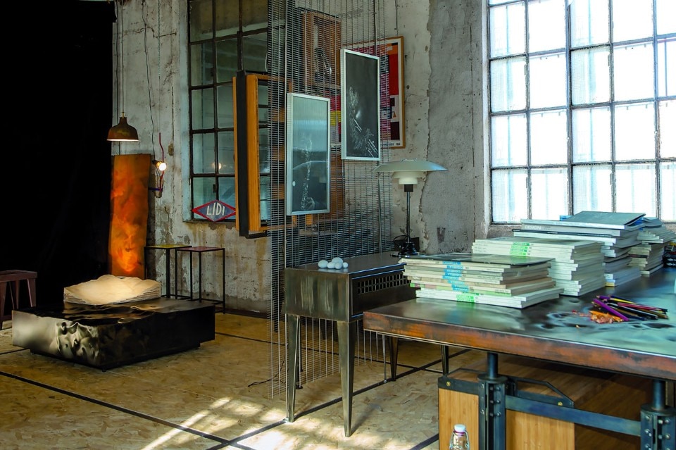 Fucina Metal Art&Design, vista dell'allestimento nel Vecchio Opificio, realizzato in collaborazione con l’architetto Sergio Fumagalli