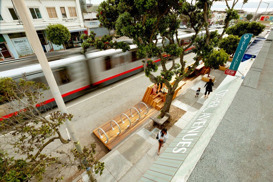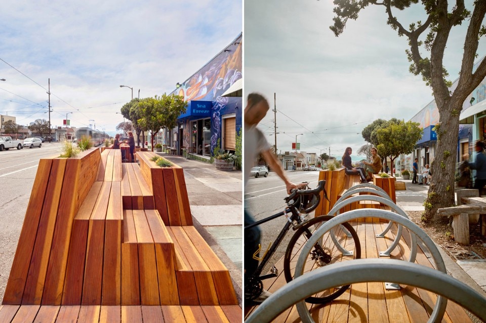 Il Sunset Parklet è un nuovo sistema di arredo urbano progettato da Interstice Architects per imprese locali nel quartiere Outer Sunset di San Francisco, sulla linea di transito della metropolitana leggera Judah.
