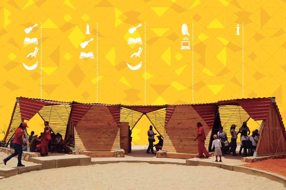 Il risultato fisico del workshop condotto dai tre studi (i primi due venezuelani, il terzo colombiano) è un’edificazione radiale che si espande nel contesto incorporando lo spazio pubblico.