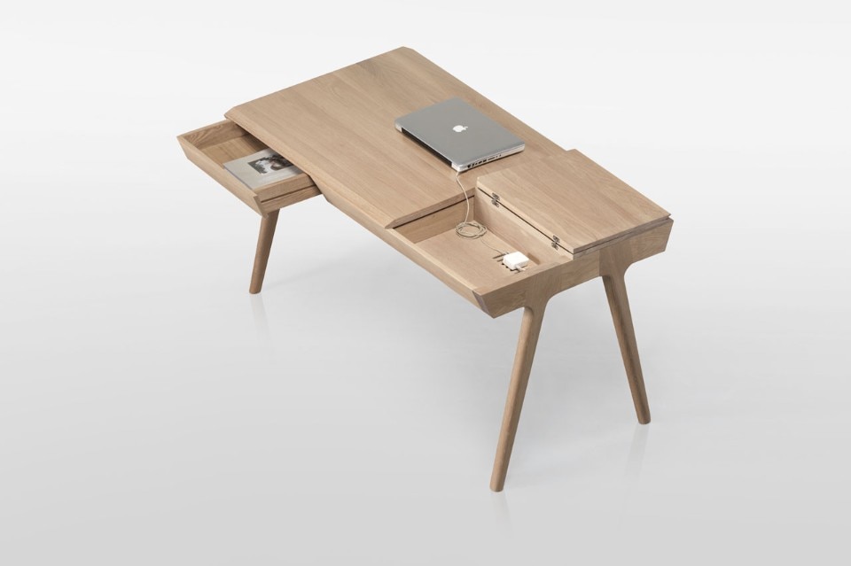 Diversi piccoli dettagli rendono interessante questo prodotto: dalle facciate inclinate che mantengono i cassetti lontani quando si è seduti, alla stringa nascosta che apre uno scomparto segreto, tutto accuratamente progettato e testato per essere funzionale e comodo da usare.